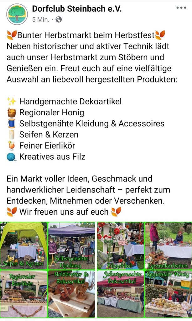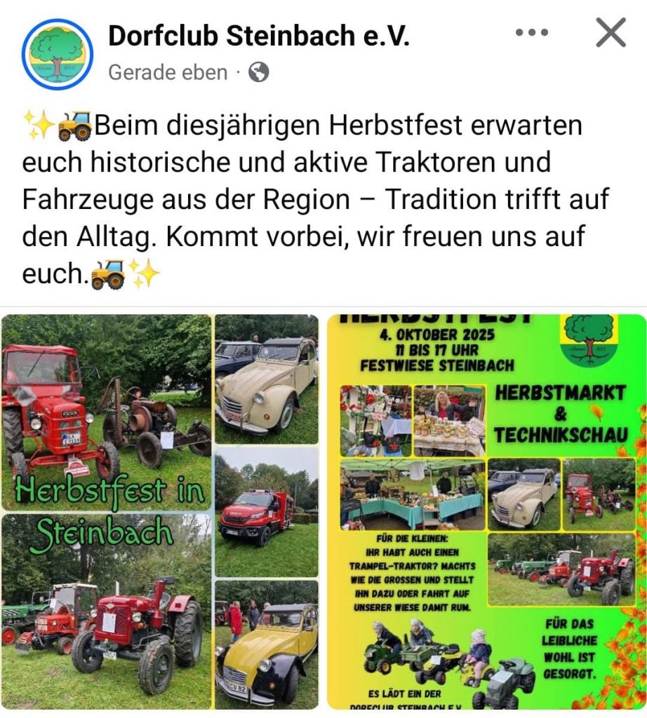 Der Dorfclub Steinbach e.V. und die Freiwillige Feuerwehr Steinbach freuen sich auf ihr Kommen.